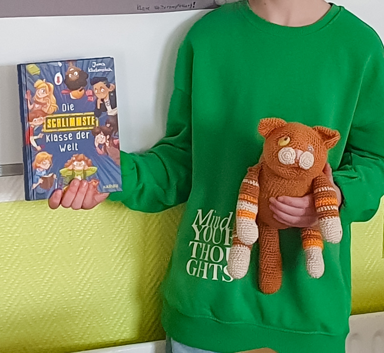 Bei der 5a ist das anders. Ich gehöre nämlich zu ihnen und bin Mitglied der schlimmsten Klasse der Welt, jawohl! Meistens liege ich bei Rolf Keller, der im Rollstuhl sitzt, auf dem Schoß und lasse mich streicheln. Auch im Unterricht!